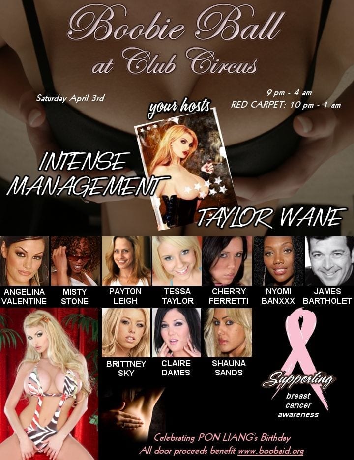 The Boobie Ball is set to hit Hollywood California this Saturday, April 3rd at the Club Circus in Hollywood. Club Circus is located at 6655 Santa Monica Boulevard Hollywood California. Doors open at 9pm and red carpet starts at 10pm. The event is produced by Intense Management.