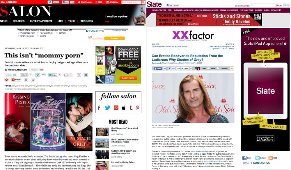 Slate Article: http://www.slate.com/blogs/xx_factor/2013/03/29/can_erotica_be_serious_fleshbot_fiction_50_shades_of_grey_and_the_future.html