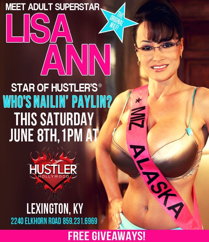 Lisa Ann will then be descending upon Kentucky; the high-powered performer will be feature dancing at Racers in Sparta on Friday, June 7 and Saturday June 8, performing two shows nightly. She will also be appearing at an autograph-signing session at The Hustler Hollywood Store in Lexington on Saturday, June 8th from 1pm – 5pm.