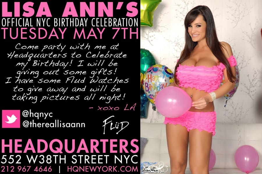 “Starting my birthday in New York City is very special to me,” says Lisa Ann, “Spending it with all my favorite people at Headquarters, my home club in the city, really ices the cake.”