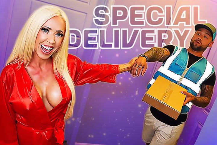 Playing on the Old School theme of sausage pizza, London Ford’s “Special Delivery: Sausage of the Month” for Nookies Originals has been blowing up. Nookies legend MILF Mandy Monroe is fiending for sausage, and she’s even in the “Sausage of the Month” club. After placing her order and waiting for her delivery, London appears at her door, and she definitely wants his hot and spicy sausage. Mandy gets on her knees for a BJ with some dirty talk, and of course, there are lots of sausage jokes. The two head for the bedroom for the main event, and Mandy keeps her heels on as he fucks her in doggy. London keeps the orgasms coming, and Mandy’s eyes are rolling at the back of her head. London picks up Mandy and fucks her in missionary. Then Mandy climbs on top to ride the ride in reverse cowgirl, before London takes the reins and fucks her in side fuck and missionary, before pumping the secret sauce all over her rack and stomach. Watch the trailer and exclusive scene at nookies.com/video/3329/ special-delivery-sausage-of- the-month.
