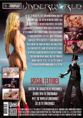 LOS ANGELES, CA – (OCTOBER 3, 2013) – From the future shock of “Euphoria” and “2040” to the sensual dream world depicted in “The Craving,” Brad Armstrong’s Wicked Pictures blockbusters deliver beautiful women, spectacular art direction and dark sensual fantasy. Wicked’s latest collaboration with this one-of-a-kind talent is arriving in stores across the country this week. Entitled “Underworld,” it is a spectacular sexual odyssey through purgatory and paradise showcasing three-time AVN Best Actress winner jessica drake. Armstrong’s 2-Disc release examines the aftermath of a robbery gone wrong. Tanya (drake) drifts into a coma-like state that sends her to an otherworldly purgatory where lost souls go to discover their fate. Along the way she meets a cast of mystical characters who guide her through this nightmarish new world where the laws of “reality” don’t apply. Her odyssey is punctuated by eight sexual encounters featuring such unforgettable characters as the half-machine “Mecca,” the haunting, red-robed super-vixen “Scarlet,” an ethereal and acrobatic “gauze girl,” the sewn-together “Stitch” and more fantastic figures. Ms. drake is in no less than five of these scenes, sharing the screen with Asa Akira, TJ Cummings, Eric Masterson, Capri Cavanni, Steven St. Croix, Asphyxia Noir, Toni Ribas and Derrick Pierce. The cast also features Armstrong, Julia Ann, Presley Hart, Adrianna Luna, Cameron Dee, Tommy Gunn and Xander Corvus. Ms. drake’s star-studded encounters (which include boy/girl, girl/girl, anal, DP and more) find their peak in a climatic meeting with Death (Pierce). Will she be able to beg or barter for her life? Will she reach her journey’s end and live to tell the tale? Director Armstrong calls this cinematic journey and the questions it poses “one of the most challenging films I’ve ever undertaken, bar none.” He’s quick to point out that the combined efforts of his star, cast and crew are big reasons for his enthusiasm. “The always amazing jessica drake and a dynamic collection of today’s most talented performers came together to create an erotic world like no other. A great script, fantastic costumes, amazing locations and non-stop sex make it a stunning visual adventure.” Armstrong’s sentiments are already being echoed in this blockbuster’s early reviews, with AIP Daily (www.aipdaily.com) giving it a perfect five star rave, dubbing it “a must-see” that’s destined to “clean up come awards season!” Come to a land of wonder, sensuality and danger. Come to the “Underworld.” DVD Elements In addition to embossed gatefold packaging, 5.1 Dolby Surround Sound and a Bonus Sex Scene, this 2-disc set contains the following special features: — “Creating the Characters of ‘Underworld.'” — “Journey Into the ‘Underworld.'” — “Meet the Women of ‘Underworld.'” — “Sex in the Underworld.'” — Photo Gallery & Trailer. For more information visit www.wicked.com and wickedb2b.com.